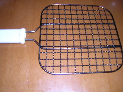 ※北海道ではフツーにばらし用の網が売られていますが、適当なもので代用できますよ、ということで。テニスやバドのラケット使う方もいるらしい…(確かにガットは緩まなければばらし易かろう。長い柄は邪魔だろうが)。