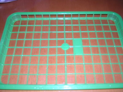 ・適当な網を用意。左は魚焼き用の網(本来下にある汁受けは外してます)、右はアジの開きかなんかを買った際のトレイというかザル。網目の幅は2cmくらい。