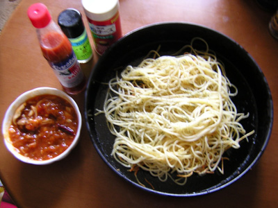 2)ソースを温めます。ソースに手を加える気が無ければ、麺を茹でてる鍋に5分ほど放り込めばOK。